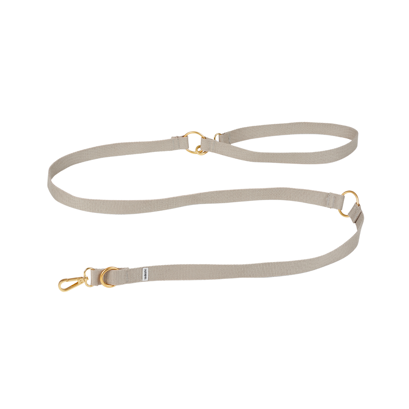 Zachte, stevige hondenriem van biologisch, gewatteerd katoen. Door het verstelbare ontwerp kies je de gewenste lengte tussen 94 en 180 cm. De mat goudkleurige metalen sluiting is stevig en bevestigd de riem veilig aan een halsband of tuigje.