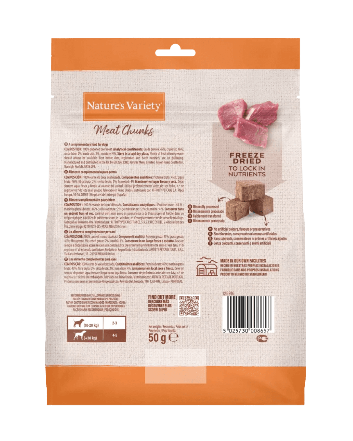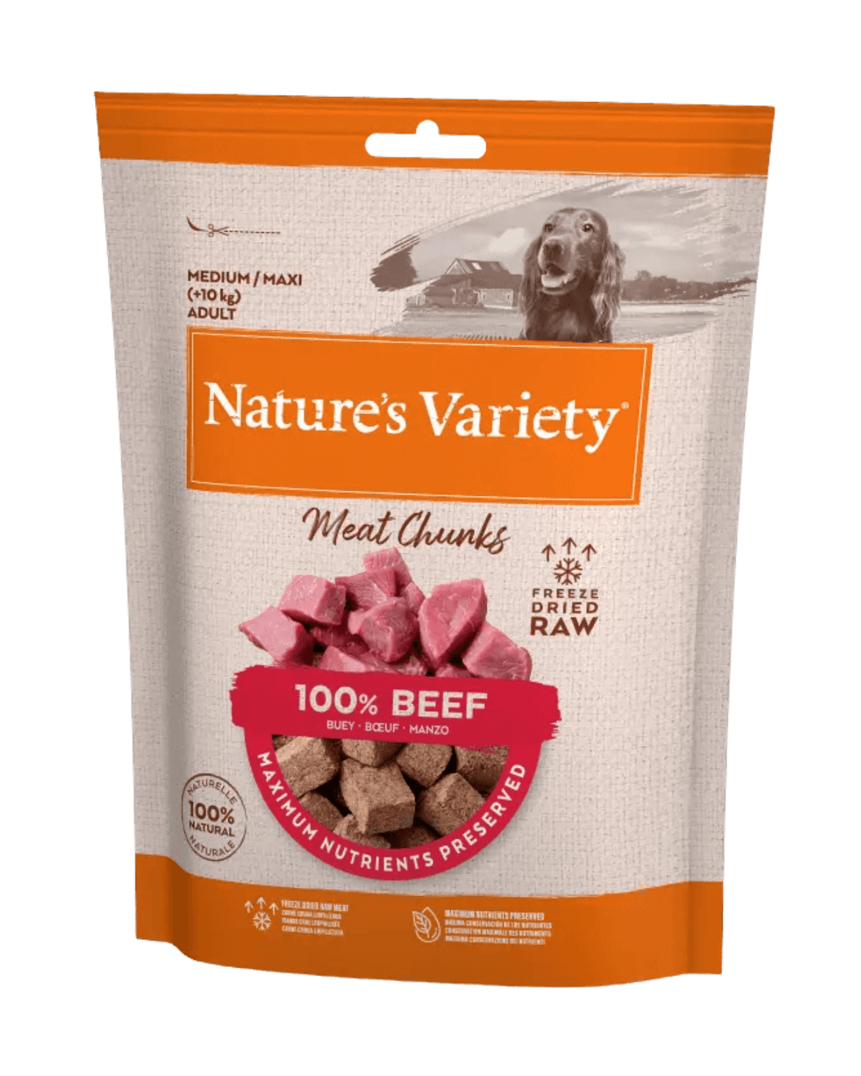 Gevriesdroogde blokjes van 100% rund als aanvullend hondenvoer of snack. Het vriesdroogproces behoudt voedingsstoffen en natuurlijke smaak zonder toevoeging van kunstmatige kleurstoffen, smaakstoffen of conserveermiddelen. Geschikt als tussendoortje of beloning voor honden van alle leeftijden en rassen.