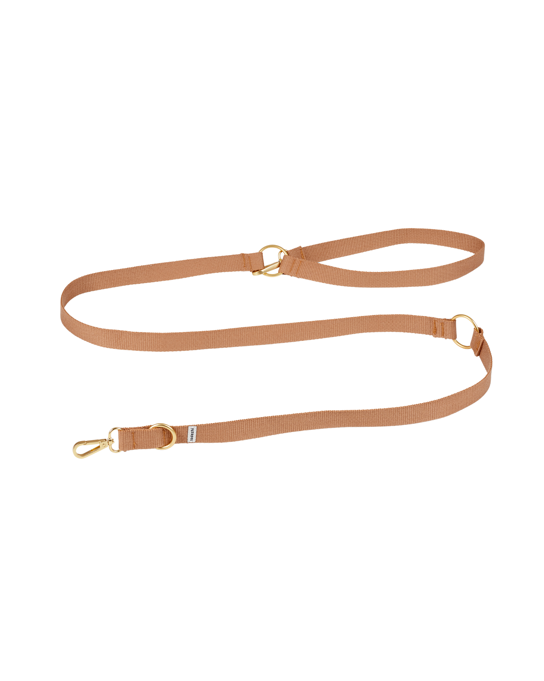 Zachte, stevige hondenriem van biologisch, gewatteerd katoen. Door het verstelbare ontwerp kies je de gewenste lengte tussen 94 en 180 cm. De mat goudkleurige metalen sluiting is stevig en bevestigd de riem veilig aan een halsband of tuigje.